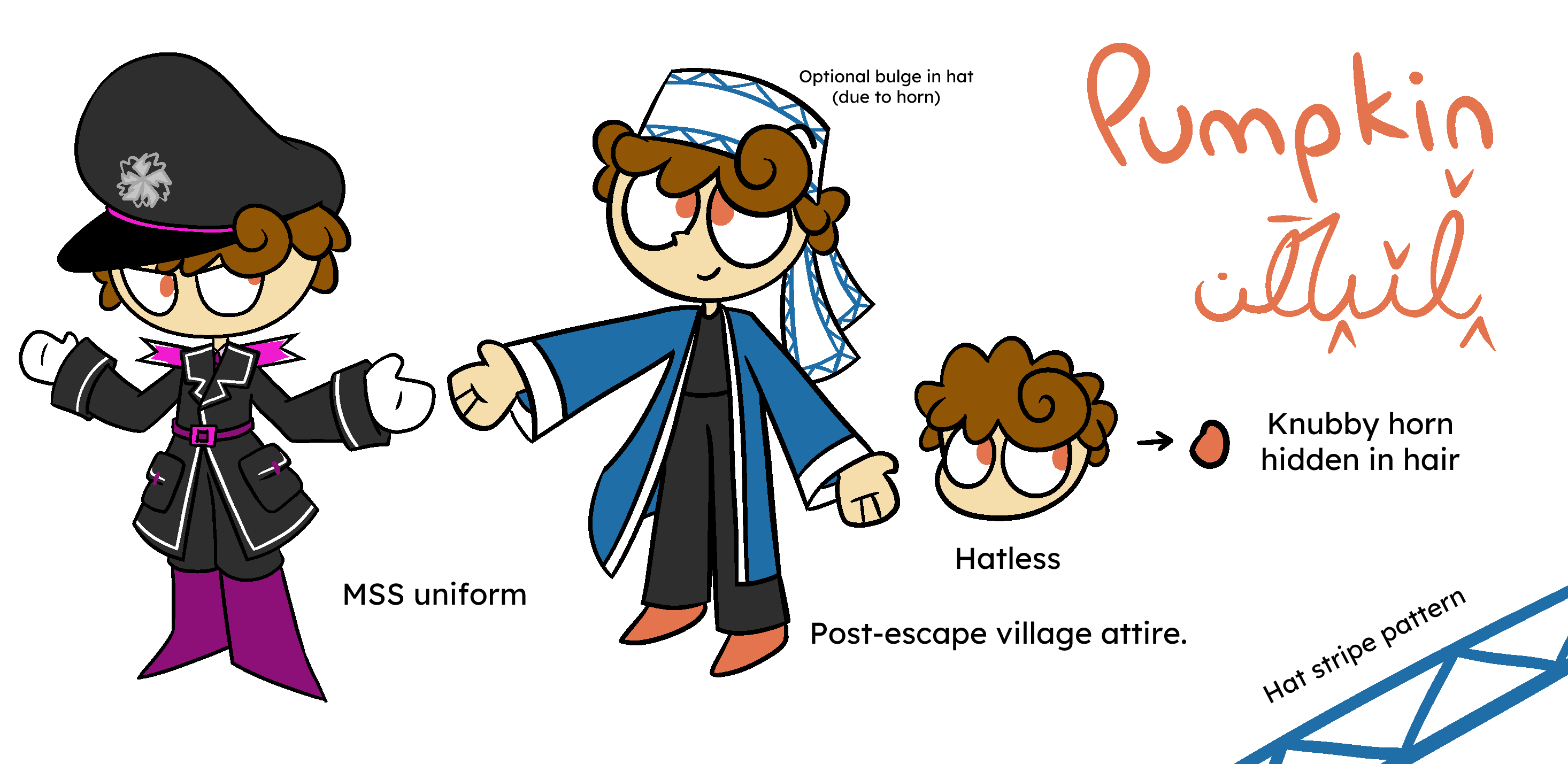 Pumpkin never thought he could've been given a job at the MSS, yet here he is. He is extremely grateful to Halcyon, respects him, and wishes to never let him down. This is why, when Halcyon started asking him to steal stuff from Paperweight and eventually more important people, he didn't decline. Pumpkin kept thinking that if he had enough spine back then, things would've turned out different. He now sees Halcyon as he is: a cowardly traitor. But who's to say Pumpkin isn't the same?